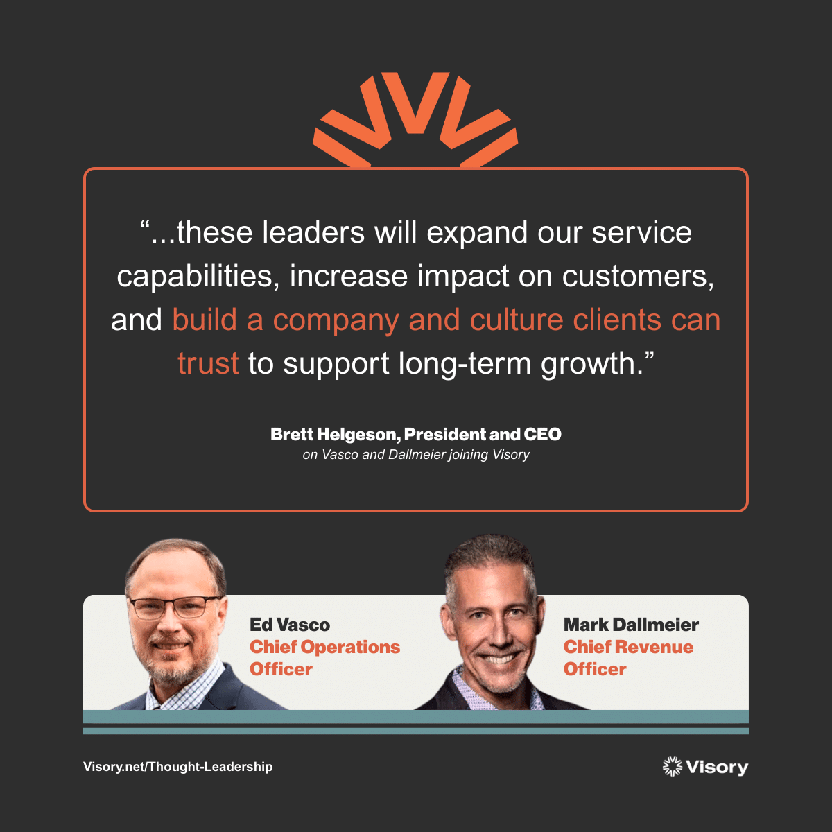 We believe organizations of every size should have access to world-class technology and cybersecurity. Visory brings enterprise-grade IT support, security and hosting services to small- and medium-sized businesses to help them grow, compete and thrive.